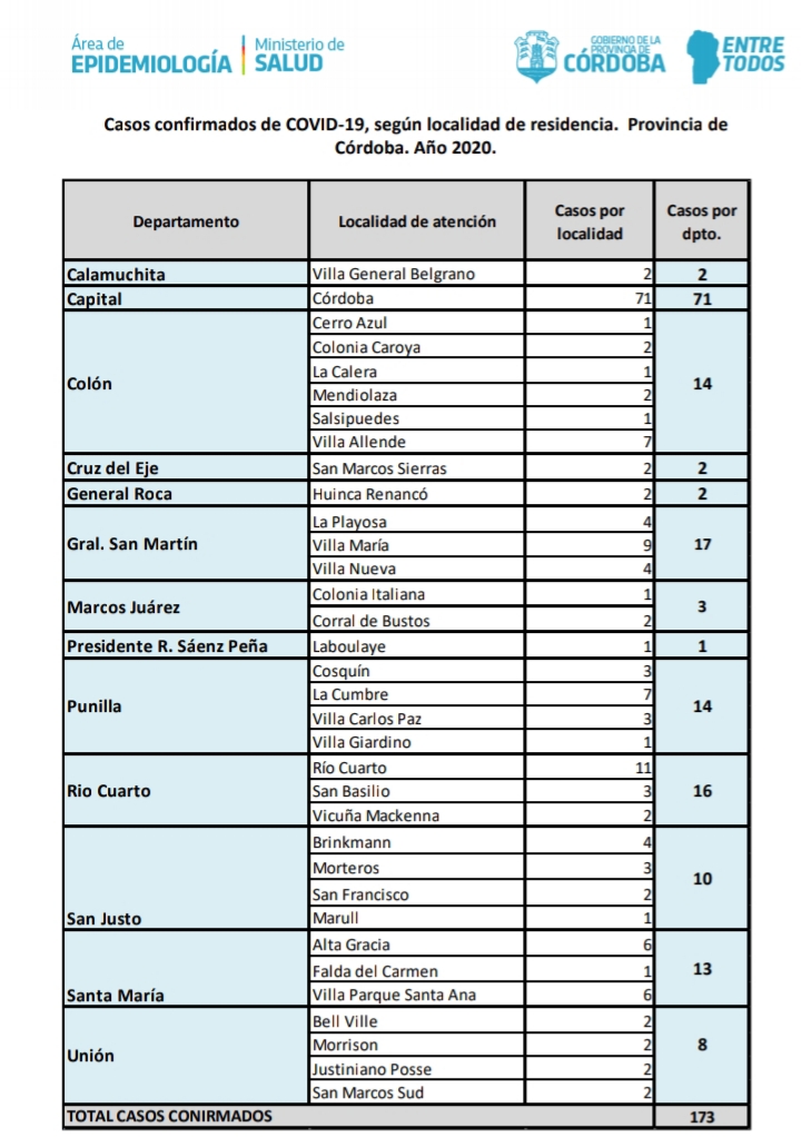 Confirman otros 13 casos de Coronavirus en la Provincia: no hay nuevos contagios en Río Cuarto