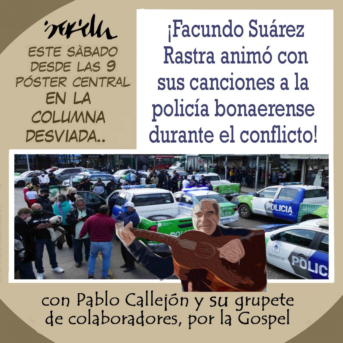 Esta semana militó activamente junto a los patrulleros policiales, y estuvo acompañando con sus sentidos versos la protesta de la Bonaerense, en un intento por minar un poquito más la democracia argentina…