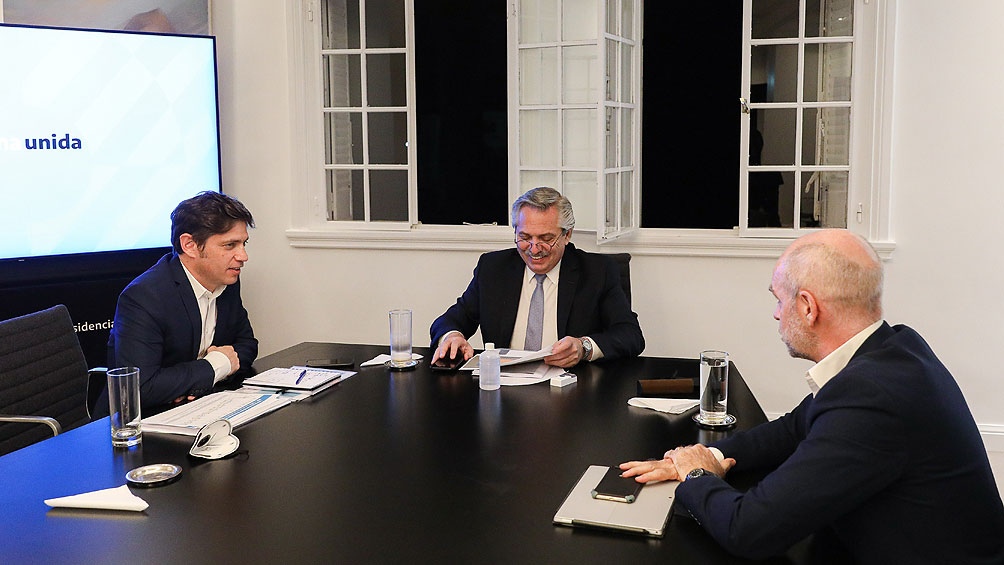 La reunión entre Fernández, Kicillof y Larreta fue la primera desde que el Gobierno nacional anunció, la semana pasada, la decisión de redireccionar a la provincia de Buenos Aires una parte de los recursos adicionales de la coparticipación que recibía la Ciudad a partir de un decreto firmado por el entonces presidente Mauricio Macri, en 2016.