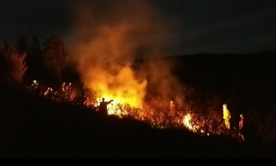 El fuego amenaza a la localidad de Achiras y tiene en vilo a los Bomberos que trabajan en el lugar. El intendente José María Gutiérrez precisó que el foco está a dos kilómetros, en la zona de Los Nogales.