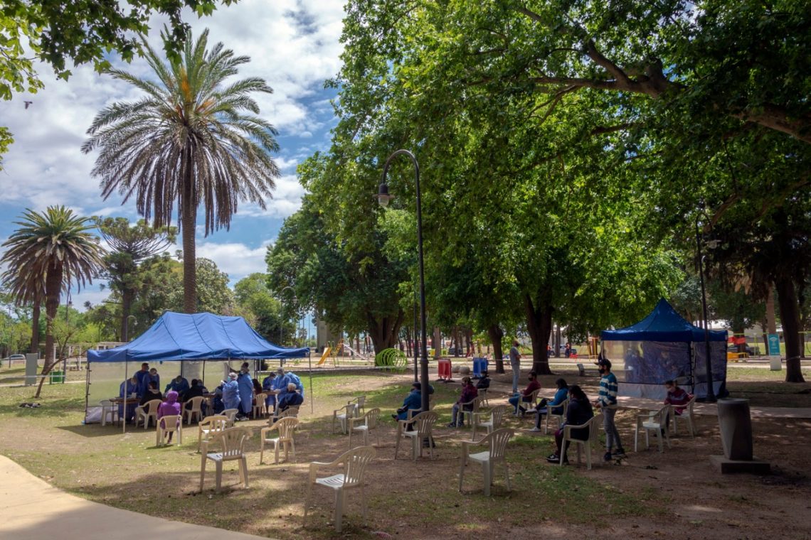 El intendente Juan Manuel Llamosas visitó el operativo en Banda Norte. y dijo que “desde que se iniciaron, se testearon más de 20 mil riocuartenses en estos operativos”.