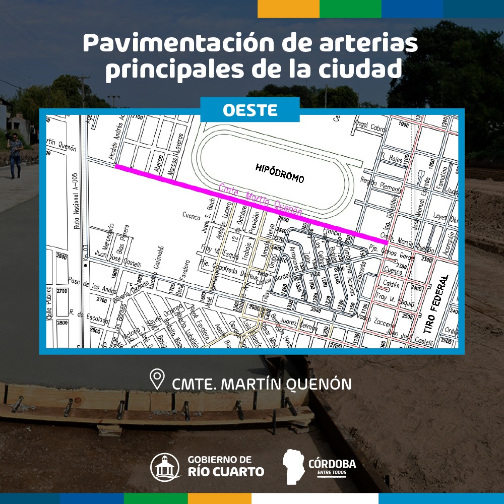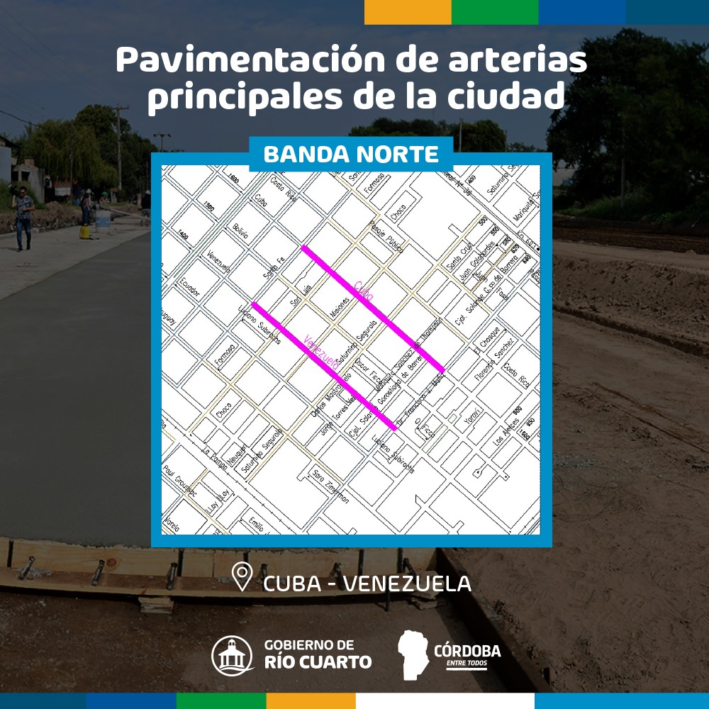 Se trata de una importante obra cuyo monto es financiado por el BID a través del Gobierno de Córdoba y prevé pavimentar, entre otras, las calles Cuba, Venezuela, Payró y Perú en Banda Norte. En barrio Alberdi las calles Yapeyú, Tucumán, Arguello, Aníbal Ponce, Salta y Malabia. Por otra parte, en sector oeste se pavimentarán Arturo M Bas, Roque Sáenz Peña, Dinkeldein y Quenón, mientras que en el Sur este se trabajará en calle Laprida.