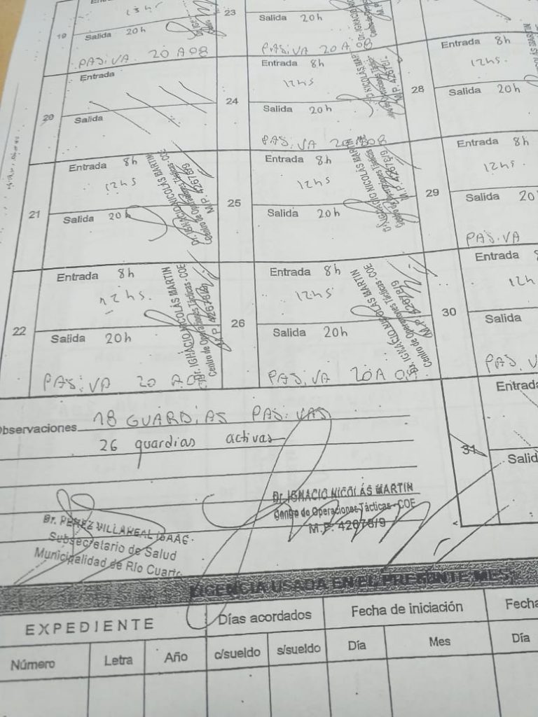 Ignacio Martín llegó a Río Cuarto junto al “cazador de virus” Diego Almada, el viceministro de Salud Pablo Carvajal y un teniente coronel relacionado a la logística del COE. El joven médico no debía ganar la confianza, la ostentaba por pertenencia. En medio del mayor brote de Coronavirus en Río Cuarto, la orden fue designar a Martín a cargo del Centro de Operaciones Tácticas. Se trataba de un área sensible y estratégica para definir la asistencia sobre los pacientes Covid positivos y aislados, resolver derivaciones y vigilar a personas en aislamiento. Le designaron una oficina que fue especialmente preparada. Contaba con computadoras, un celular personal para realizar videollamadas con afectados de la enfermedad y un tablero control en un televisor de amplias dimensiones donde podía seguir la logística de la distribución de las camas, pedidos de hisopados y flujo de contagios. Martín conocía con precisión el ABC del protocolo anti Coronavirus. Con eso le bastaba para evitar cualquier sospecha. En realidad, exhibía el guiño de Diego Almada, el máximo responsable del COE Río Cuarto, quien había logrado desplazar al director del Hospital Carlos Pepe de la conducción del organismo.