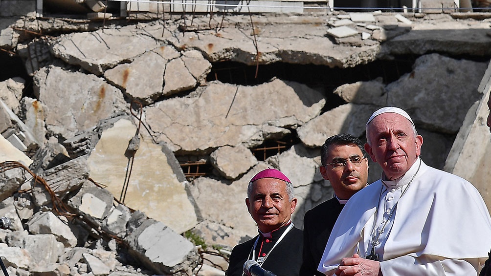 En una recorrida por dos de las ciudades más golpeadas por la milicia del Estado Islámico, Mosul y Qaraqosh, el pontífice mostró su más enérgico rechazo al fundamentalismo y convocó a una unión nacional contra la violencia, además de llevar consuelo a las comunidades cristianas que fueron expulsadas de sus territorios y lentamente reconstruyen sus casas y sus vidas en el norte y oeste del país.