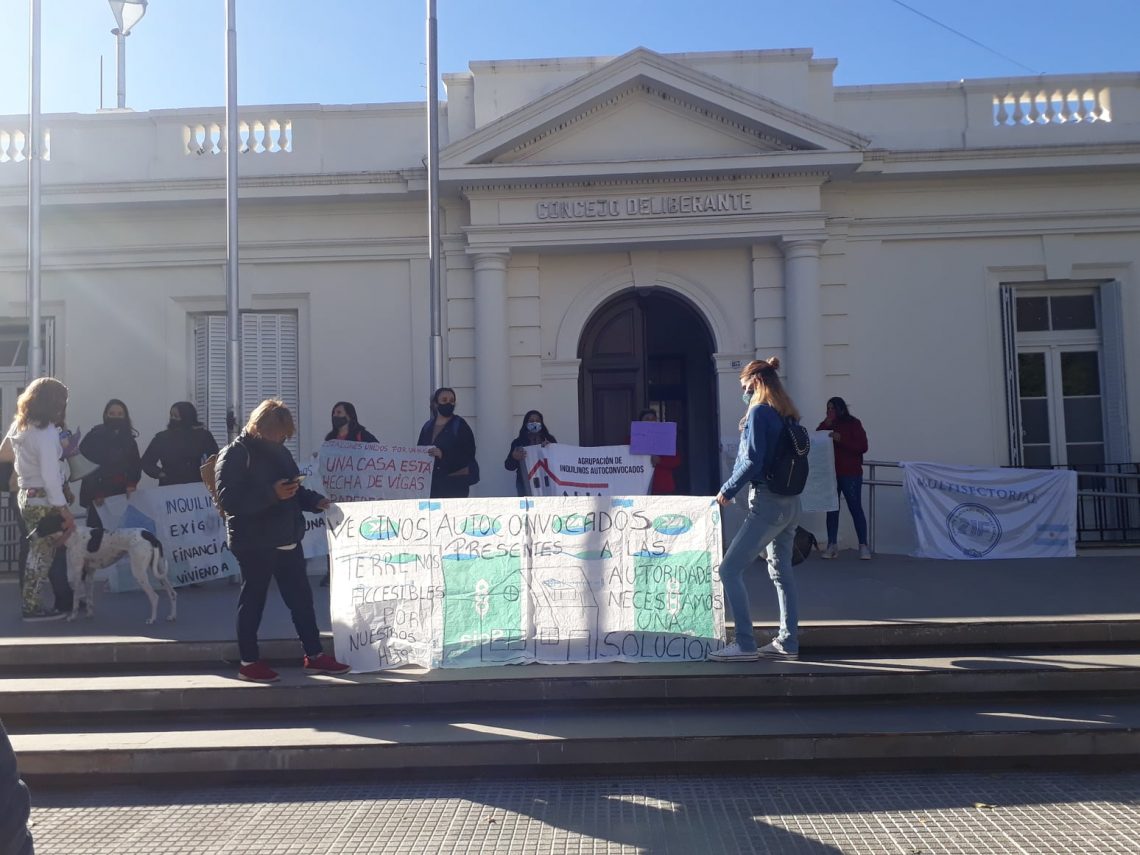 Inquilinos autoconvocados que reclaman por viviendas y terrenos realizan un acampe frente al Concejo Deliberante. Pidieron a los ediles que escuches sus planteos y advirtieron sobre la crítica situación habitacional en la ciudad.