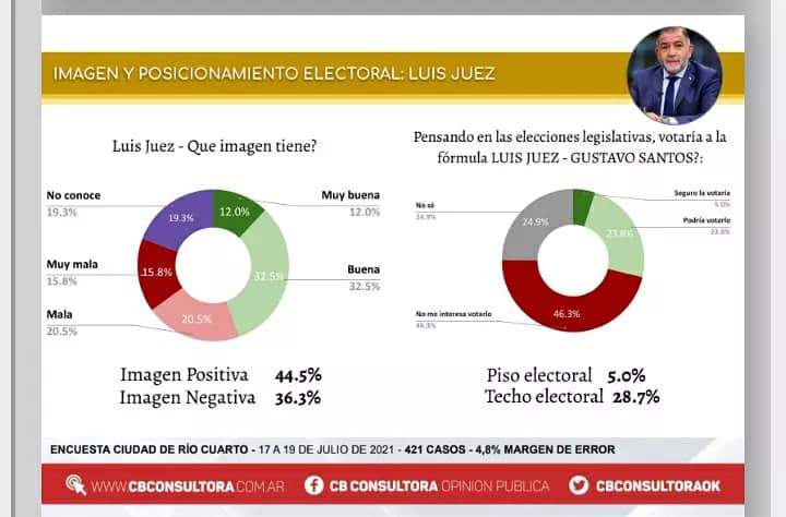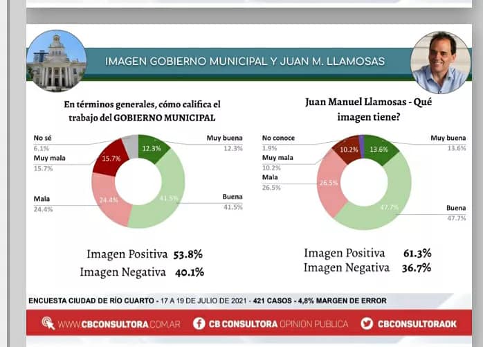 Encuesta CB Consultora: Qué opinan los riocuartenses de la gestión de Llamosas, Schiaretti y Fernández 23 julio, 2021 Anterior Encuesta en Río Cuarto: 9 de cada 10 riocuartenses tienen una imagen positiva del operativo de vacunación Más recientes Más personajes infantiles adaptados a los nuevos tiempos También te puede interesar En Río Cuarto comienzan a aplicar la tercera dosis, sin turno, a quienes hayan pasado 6 meses de la segunda 8 diciembre, 2021 50 familias ocuparon terrenos en barrio Alberdi 20 julio, 2021 Récord de contagios en Argentina: fueron confirmados 10.550 nuevos casos de COVID-19 26 agosto, 2020