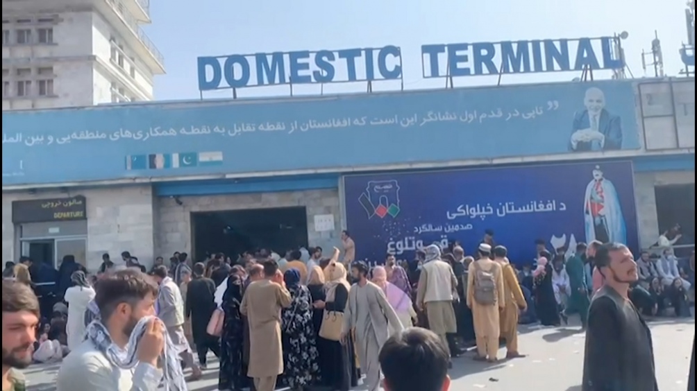 Las imágenes difundidas por los medios muestran a cientos de personas en el aeropuerto que buscan una vía de escape ante el avance talibán.