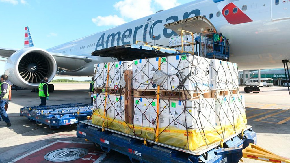 Según se informó oficialmente, la primera llegada al Aeropuerto Internacional de Ezeiza sucederá este miércoles a la tarde, a las 15.30, en el vuelo AA991 de la compañía American Airlines, con una partida de 877.500 dosis.