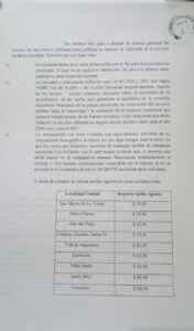 Añadieron que “hay un constante atraso en el valor de las tarifas para esta jurisdicción municipal” y consideraron que “la comparación con otras ciudades con equivalencias similares en su composición geográfica no nos deja margen para el error”