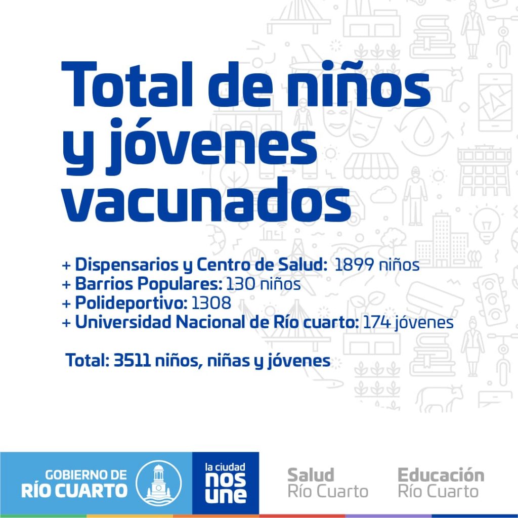 Salud informó que 3511 niños, niñas y jóvenes fueron vacunados contra el Covid 23 febrero, 2022 La secretaría de Salud informó que 3511 niños, niñas y jóvenes fueron vacunados contra el Covid. Redacción Póster Central Anterior La "testigo clave" se presentó en el Tribunal de Conducta Policial y apuntó contra Bonacci: "fue una declaración armada" Más recientes Tonello: "Pedimos que el Congreso fije una ley de eliminación gradual de las retenciones" También te puede interesar Anunciaron el proyecto de renta Inesperada: impactará en empresas con ganancias mayores a $ 1.000 millones 6 junio, 2022 Un motociclista fallecido tras una colisión en barrio Universidad 18 agosto, 2021 Conmoción por la muerte de una egresada de la UNRC que dio si vida para salvar a un niño de 8 años 1 marzo, 2021