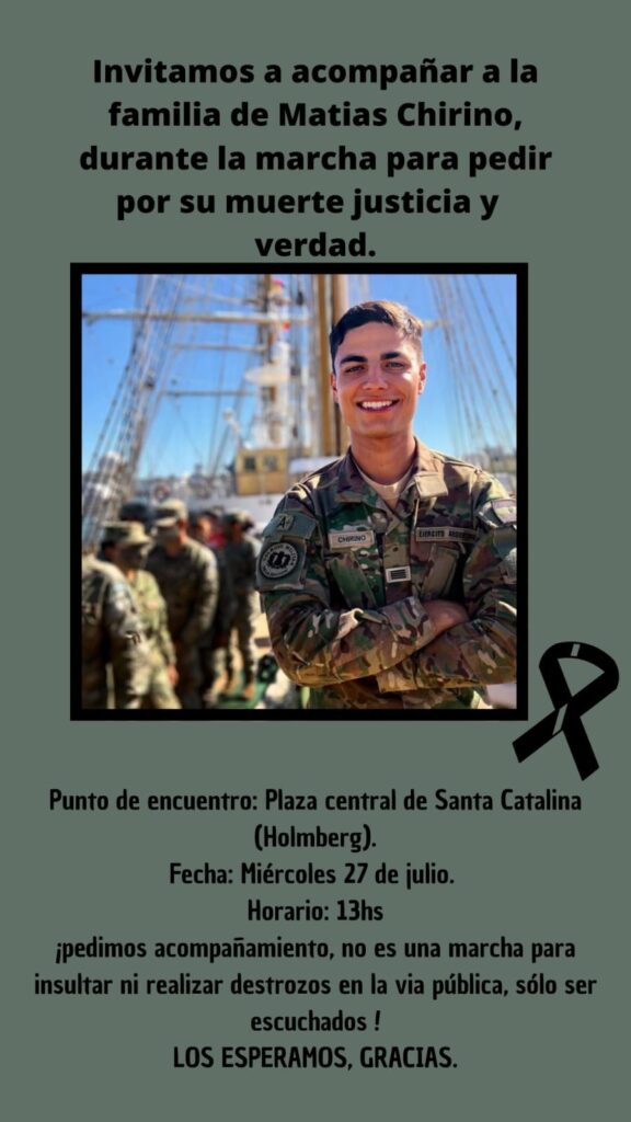 “Por más que haya terminado el servicio militar y declaren que respetan la democracia, la muerte de Matías revela que no es solo una tragedia familiar, sino un homicidio con responsables. Queremos que se determine quienes son los autores y coautores y quienes, con su silencio, permitieron que esto suceda”, enfatizó.