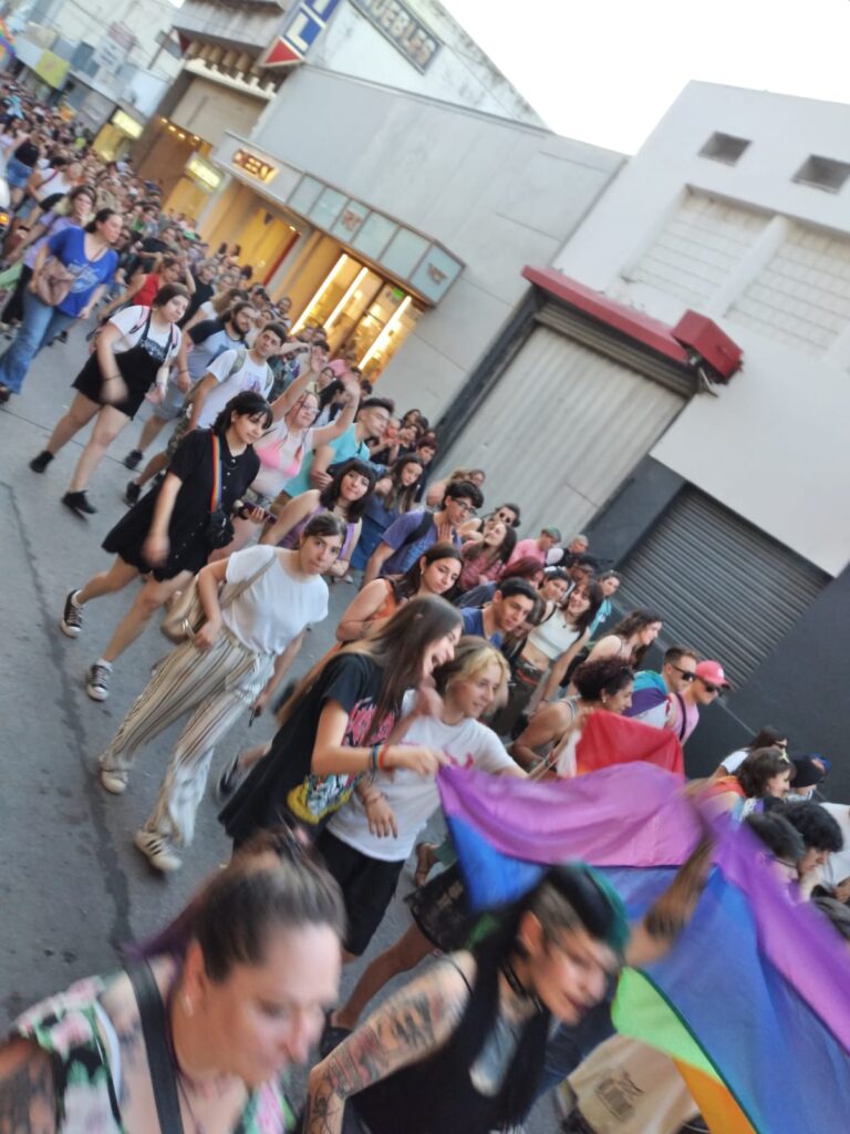 “La marcha recorrió el centro de la ciudad con la participación masiva de más de 2000 personas celebrando los logros y exigiendo igualdad de derechos “La Deuda es Con Nosotrxs” y para Exigir una ley y ordenanza de prevencion y sancion de actos discriminatorios y una ley integral trans”, indicaron desde la organización.
