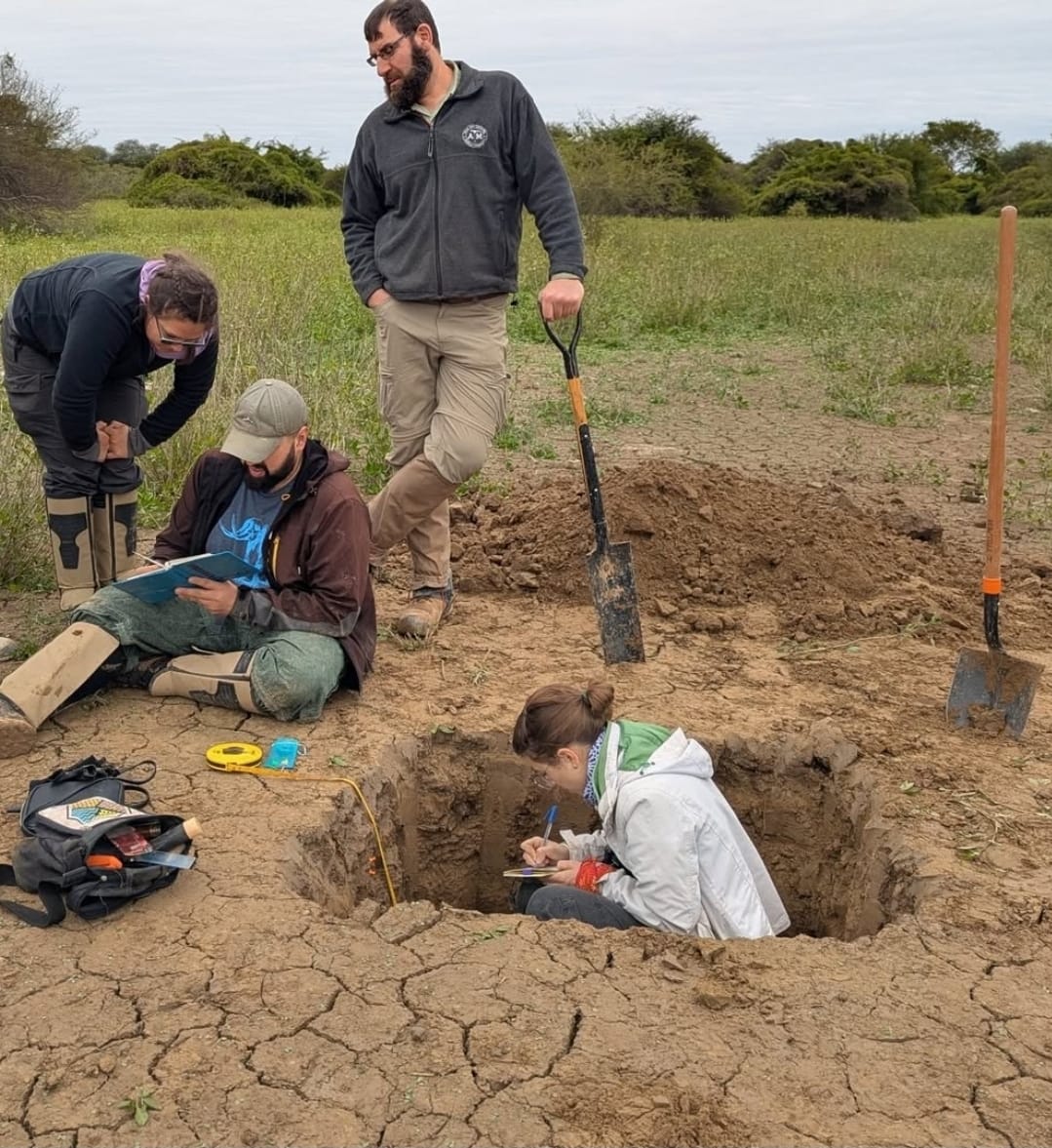 Durante la campaña de este año, que se desarrolló entre el 26 de junio y el 15 de julio, el equipo recorrió diferentes zonas y localizó restos de animales como capibaras y caimanes. “A la mañana nos dividíamos en grupos según nuestros objetivos, por lo general éramos dos o tres grupos de paleontología (aquellos que buscaban los elementos esqueléticos “fósiles modernos”, otros que se encargaban de micrositios de vertebrados y/o grupos que instaban cámaras de seguimiento de fauna) y otro de geomorfología y sedimento. Nosotros, íbamos reconociendo en campo los distintos ambientes geomorfológicos que habíamos visto previamente en gabinete, y ahí hacíamos calicatas para poder hacer las descripciones de los sedimentos. También nos encargábamos de hacer relevamiento con drones”, relató.